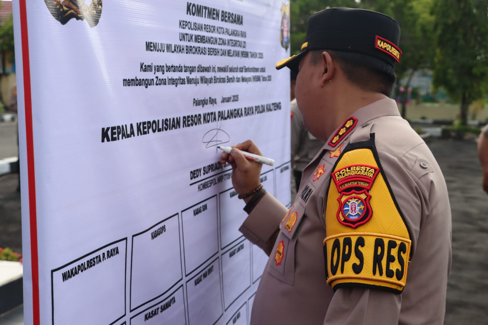 PALANGKARAYA – Kapolresta Palangka Raya, Kombes Pol Dedy Supriadi, mengukuhkan komitmen jajarannya untuk membangun Zona Integritas (ZI) sebagai bagian dari langkah strategis mewujudkan Wilayah Birokrasi Bersih dan Melayani (WBBM). Komitmen ini ditandai dalam penandatanganan bersama yang digelar di Mapolresta Palangka Raya, baru-baru ini.