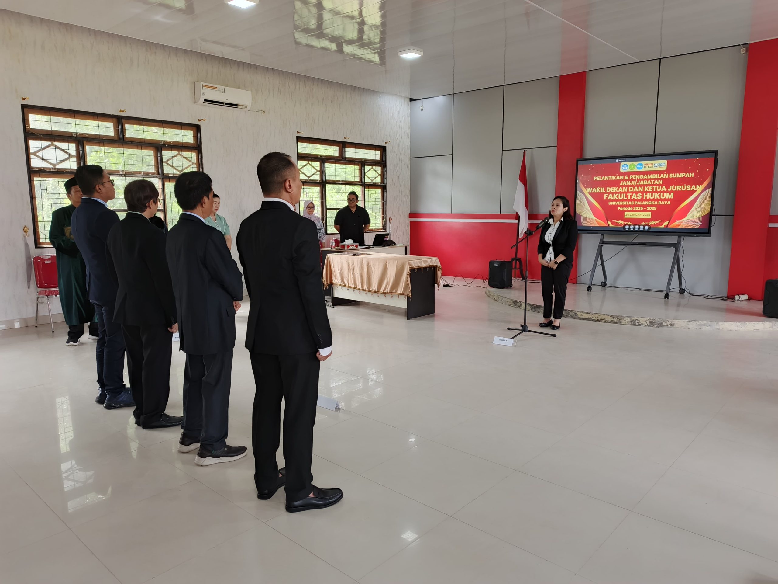 PALANGKARAYA — Fakultas Hukum Universitas Palangka Raya (FH-UPR) secara resmi melantik Wakil Dekan dan Ketua Jurusan baru periode 2025-2029 pada Jumat (24/01/2025). Acara pelantikan yang berlangsung khidmat ini turut dihadiri oleh keluarga pejabat terpilih serta sejumlah tamu undangan dari internal Universitas Palangka Raya.