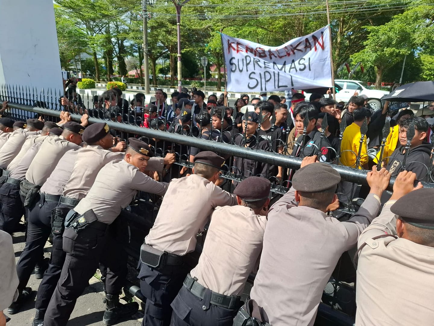 Di tengah aksi, massa terus menyerukan agar DPRD Kalimantan Tengah mengambil sikap tegas dengan menyatakan penolakan resmi terhadap RUU TNI serta mendesak pemerintah pusat agar membatalkan rancangan undang-undang tersebut.