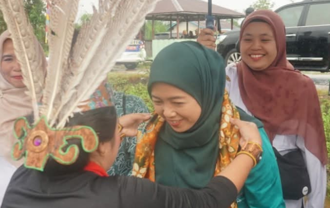 Ketua TP-PKK Katingan, Sumiati Saiful ketika menghadiri kegiatan pengabdian kepada masyarakat yang dilaksanakan oleh Poltekkes Kemenkes Palangka Raya, di Desa Hiyang Bana, Rabu kemarin, (9/4/2025).