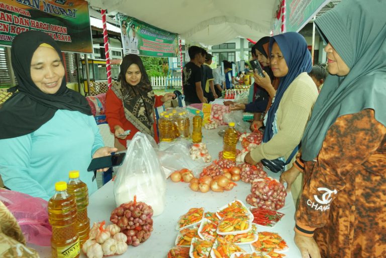 PALANGKA RAYA – Gerakan Pangan Murah (GPM) yang digelar Dinas Pertanian dan Ketahanan Pangan Kota Palangka Raya di Kelurahan Kalampangan, Kamis (24/4/2025), disambut dengan antusias oleh warga. Meski diguyur hujan, halaman kantor kelurahan tetap dipenuhi warga yang ingin mendapatkan bahan pokok murah.