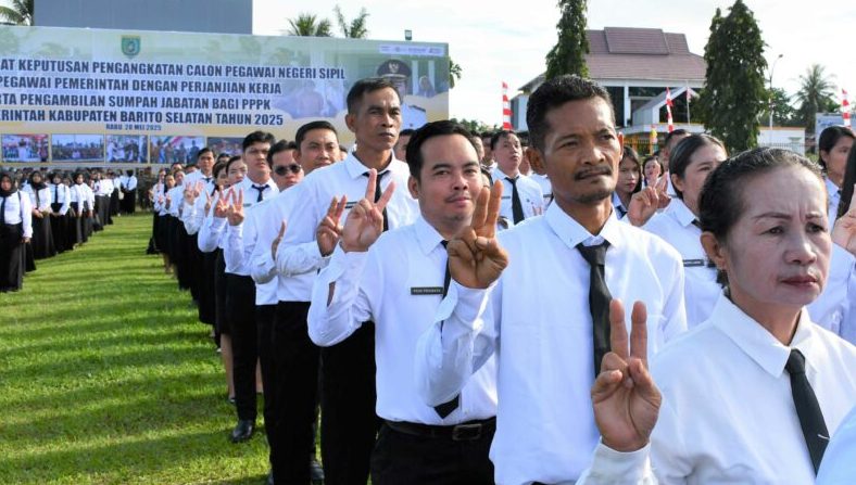 BUNTOK – Rabu (28/5/2025), Pemerintah Kabupaten Barito Selatan menyerahkan Surat Keputusan (SK) pengangkatan kepada 1.530 CPNS dan PPPK formasi tahun 2024, sekaligus melaksanakan pengambilan sumpah jabatan secara langsung.