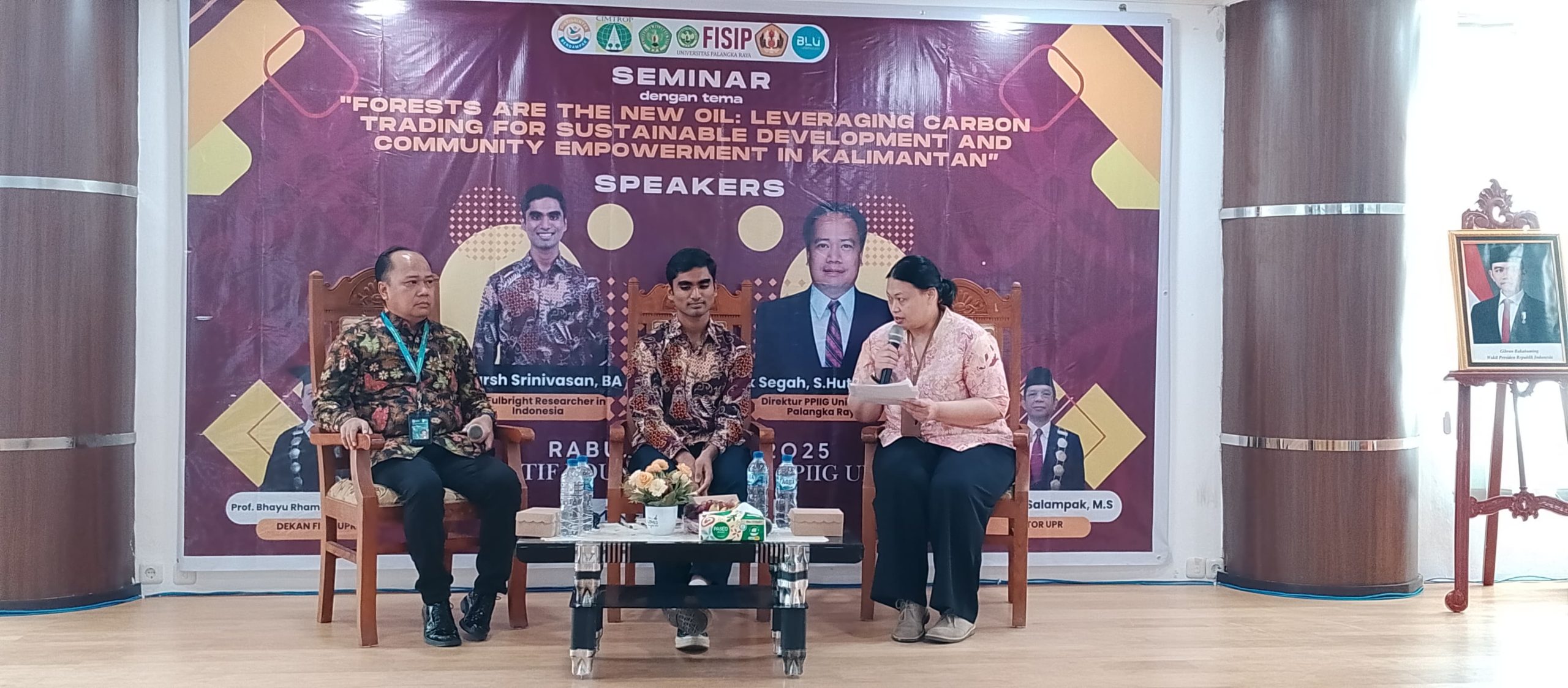 PALANGKARAYA – Seminar bertajuk “Forest Are The New Oil: Leveraging Carbon Trading For Sustainable Development and Community Empowerment in Kalimantan” sukses digelar Fakultas Ilmu Sosial dan Ilmu Politik Universitas Palangka Raya (FISIP UPR), Rabu (04/06/2025), di lantai 7 Gedung PPIIG.