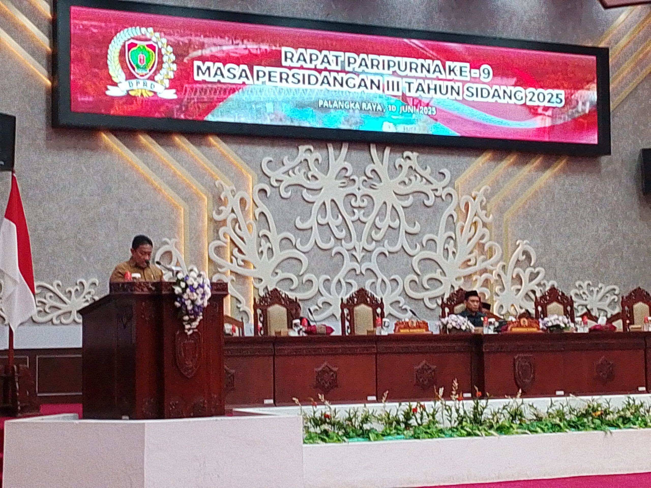 PALANGKARAYA – Dewan Perwakilan Rakyat Daerah (DPRD) Provinsi Kalimantan Tengah (Kalteng) melaksanakan Rapat Paripurna ke-9 Masa Persidangan III Tahun Sidang 2025, dengan agenda penyampaian Jawaban Gubernur atas Pemandangan Umum Fraksi-Fraksi DPRD terhadap Raperda Pertanggungjawaban Pelaksanaan APBD Tahun Anggaran 2024. Kegiatan ini berlangsung di Ruang Paripurna DPRD Kalteng, Jalan S. Parman, Kota Palangkaraya, Selasa (10/06/2025) pagi.