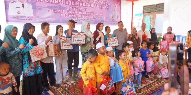 PALANGKARAYA – Ketua Tim Pembina Posyandu Provinsi Kalimantan Tengah, Aisyah Thisia Agustiar Sabran, menyerahkan secara langsung sejumlah bantuan sebagai bagian dari implementasi enam Standar Pelayanan Minimal (SPM) di Posyandu Harapan Bangsa, Kelurahan Menteng, Kota Palangka Raya, belum lama ini.