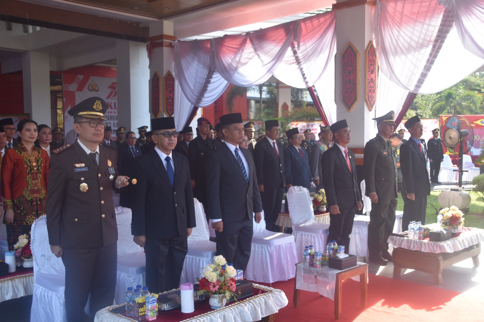 KASONGAN – Pemerintah Kabupaten Katingan bersama unsur Forkopimda mengikuti upacara peringatan Hari Bhayangkara ke-79 yang digelar di halaman Kantor Bupati Katingan. Acara tersebut dilanjutkan dengan kegiatan syukuran sebagai bentuk penghargaan atas pengabdian Polri kepada bangsa dan negara.