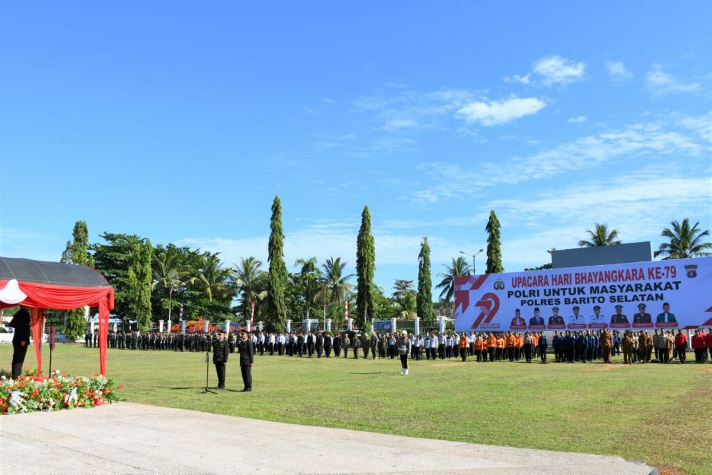 BUNTOK – Peringatan Hari Ulang Tahun (HUT) Bhayangkara ke-79 di Kabupaten Barito Selatan berlangsung khidmat dan penuh semangat kebersamaan. Upacara dilaksanakan belum lama ini di halaman Kantor Bupati Barsel, dihadiri unsur Forkopimda dan jajaran pejabat daerah.
