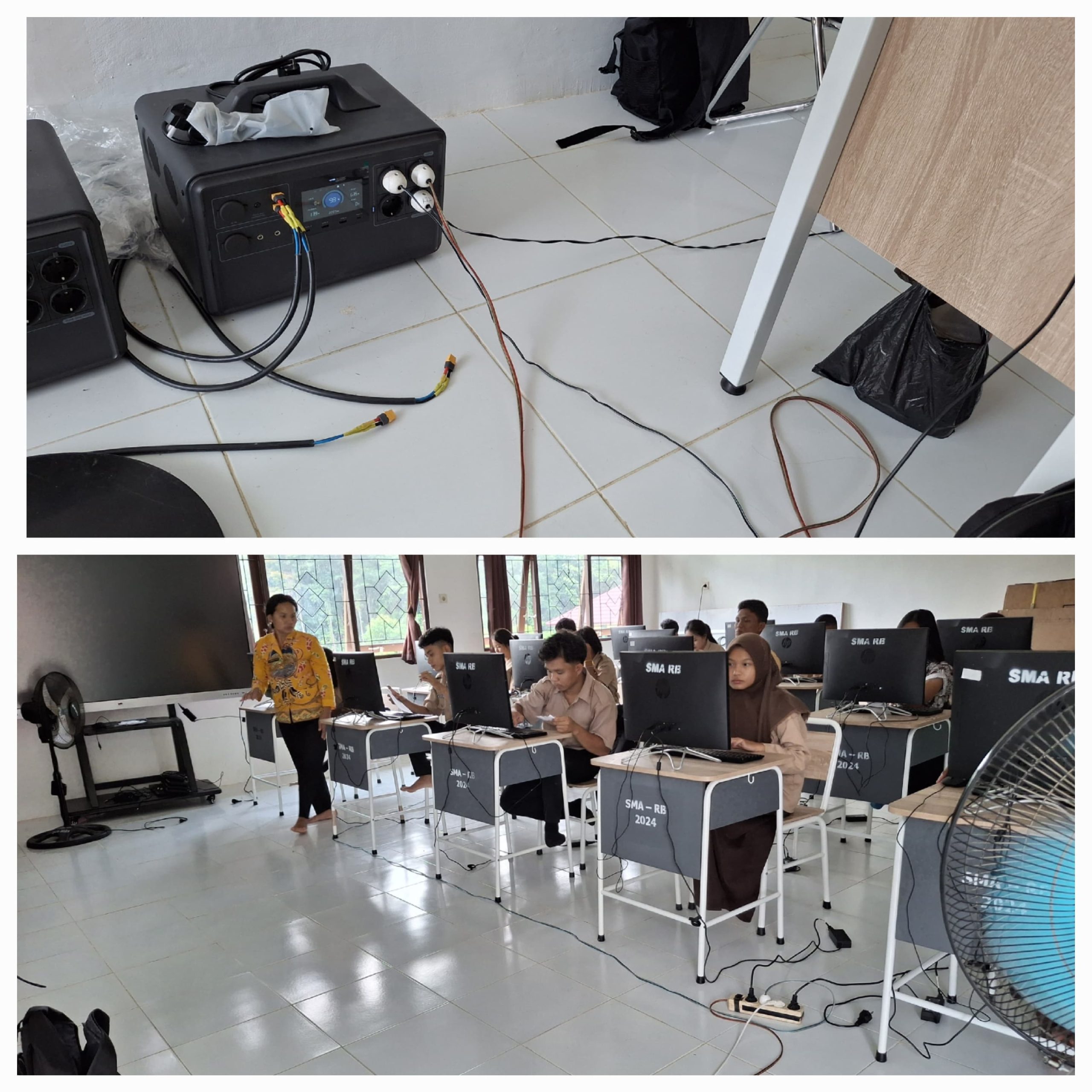 Panel surya memastikan seluruh perangkat komputer dan TV interaktif tetap menyala meskipun listrik padam di tengah pelaksanaan gladi.