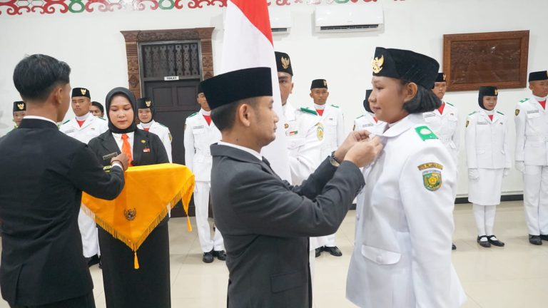 PALANGKARAYA – Aula Rumah Jabatan Wali Kota Palangka Raya menjadi saksi prosesi pengukuhan Pasukan Pengibar Bendera Pusaka (Paskibraka) Tahun 2025, Jumat (15/8/2025). Acara berlangsung penuh khidmat dengan nuansa kebangsaan yang kental.