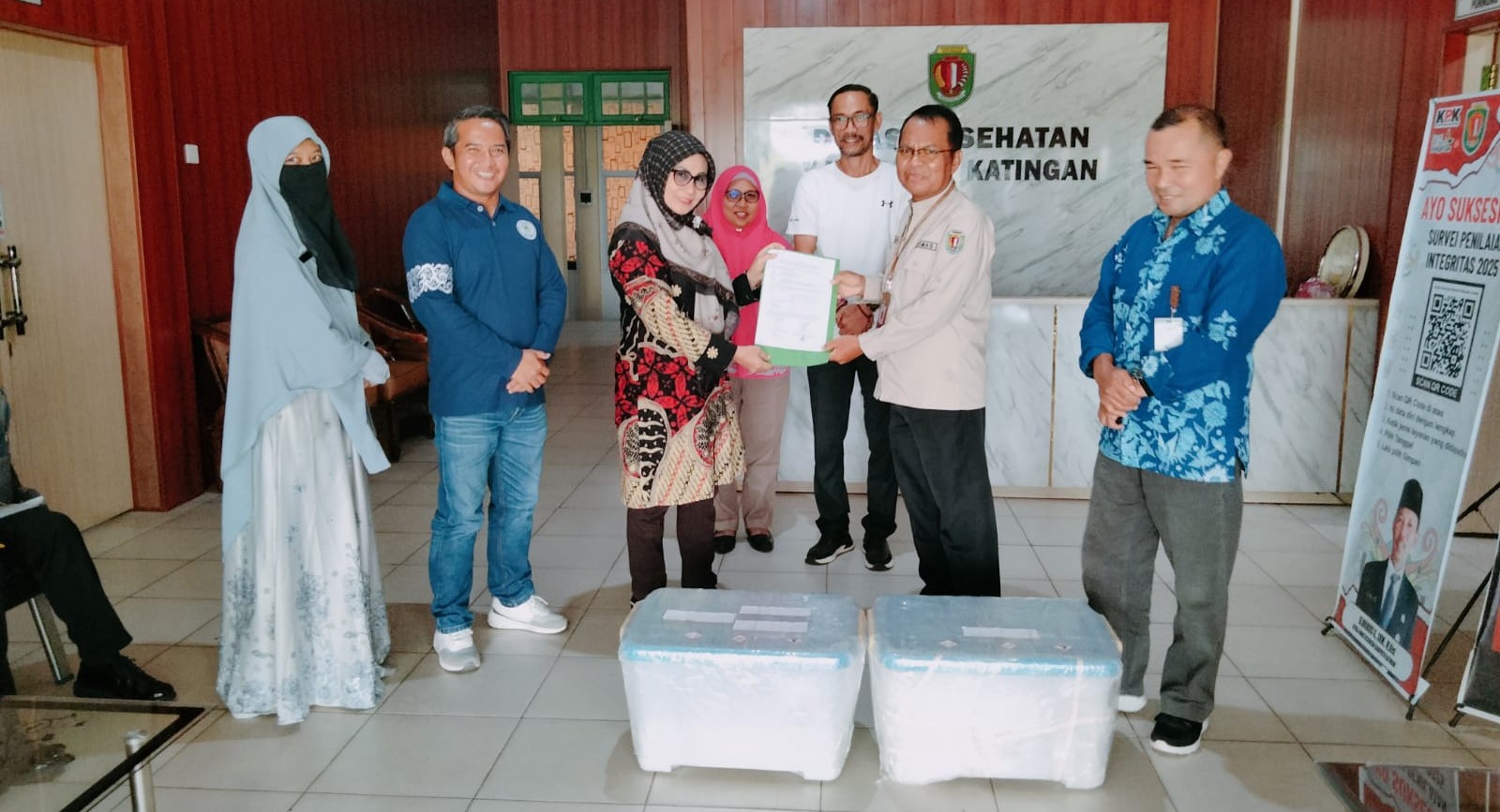 Serah terima dilakukan di Kantor Dinas Kesehatan Kabupaten Katingan dengan penerima Kepala Bidang Kesehatan Masyarakat, Setia Jaya, didampingi oleh Nurdiansyah.