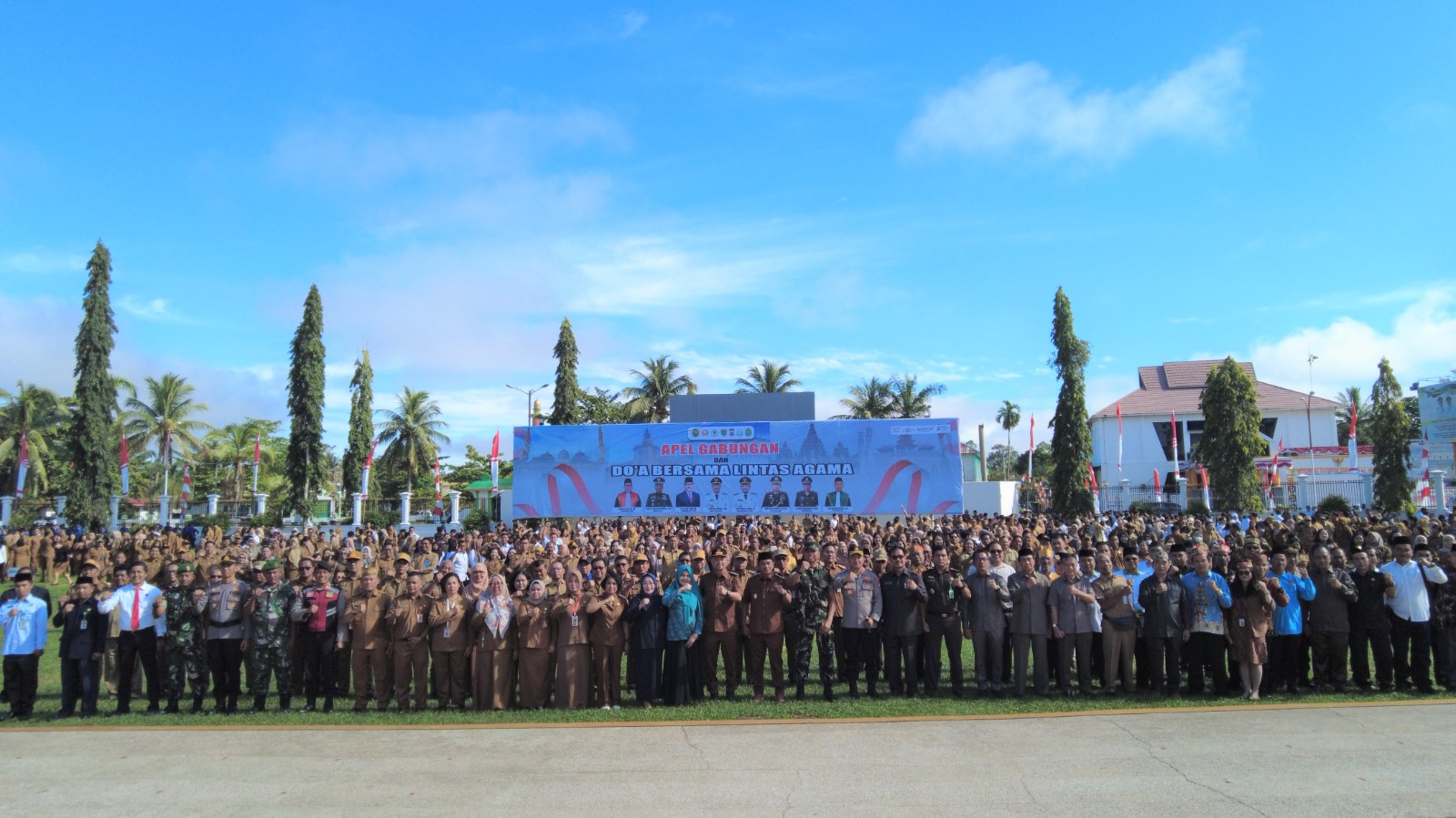 BUNTOK – Apel gabungan dan doa bersama lintas agama digelar Pemerintah Kabupaten Barito Selatan di halaman Kantor Bupati. Acara dipimpin langsung Bupati Eddy Raya Samsuri.