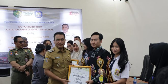 PALANGKARAYA – Satuan Polisi Pamong Praja (Satpol PP) Kota Palangka Raya menggelar pengukuhan sekaligus penyerahan hadiah bagi pemenang Lomba Duta Ketentraman dan Ketertiban Umum (Trantibum) tingkat SMP/MTs. Acara ini turut dihadiri Wakil Wali Kota Palangka Raya, Achmad Zaini, Senin (1/9/2025).