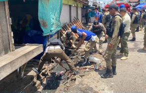 “Penertiban hari ini kita fokuskan pada pembersihan dan penataan area drainase yang selama ini digunakan sebagian pedagang untuk berjualan. Harapannya setelah penataan selesai, kawasan pasar bisa lebih tertib, bersih, dan nyaman untuk masyarakat,” ucapnya, Kamis (02/10/2025) kemarin.