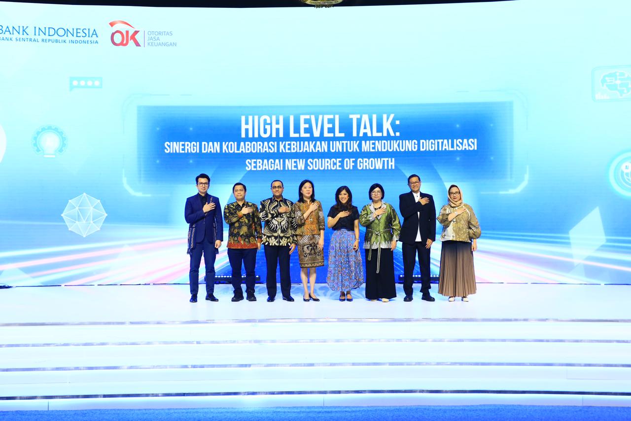 Dalam sesi High-Level Talk bertema “Sinergi dan Kolaborasi Kebijakan untuk Mendukung Digitalisasi sebagai New Source of Growth”, hadir pula Menteri Komunikasi Digital Meutya Hafid, Hasan Fawzi (Kepala Eksekutif IAKD OJK), dan Filianingsih Hendarta (Deputi Gubernur BI).