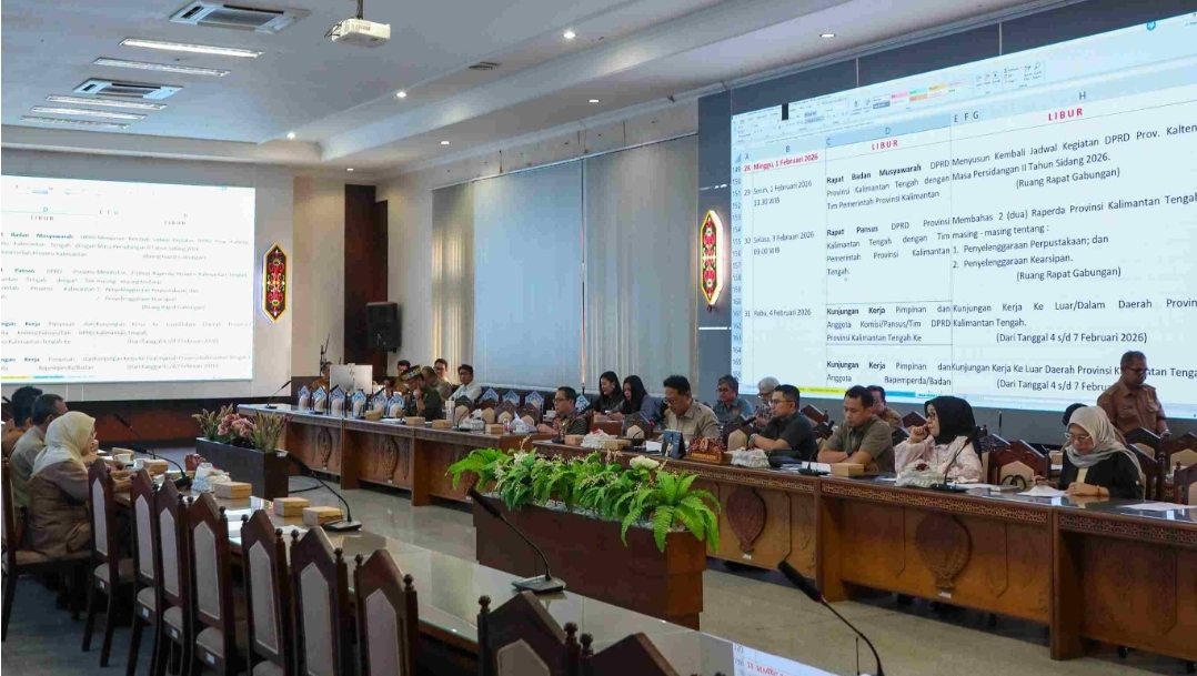 PALANGKA RAYA – DPRD Kalteng bersama Pemprov Kalteng menyepakati revisi jadwal kegiatan Masa Persidangan II Tahun 2026 dalam Rapat Badan Musyawarah (Banmus) yang digelar di Ruang Rapat Gabungan DPRD Kalteng, Senin (2/2/2026).