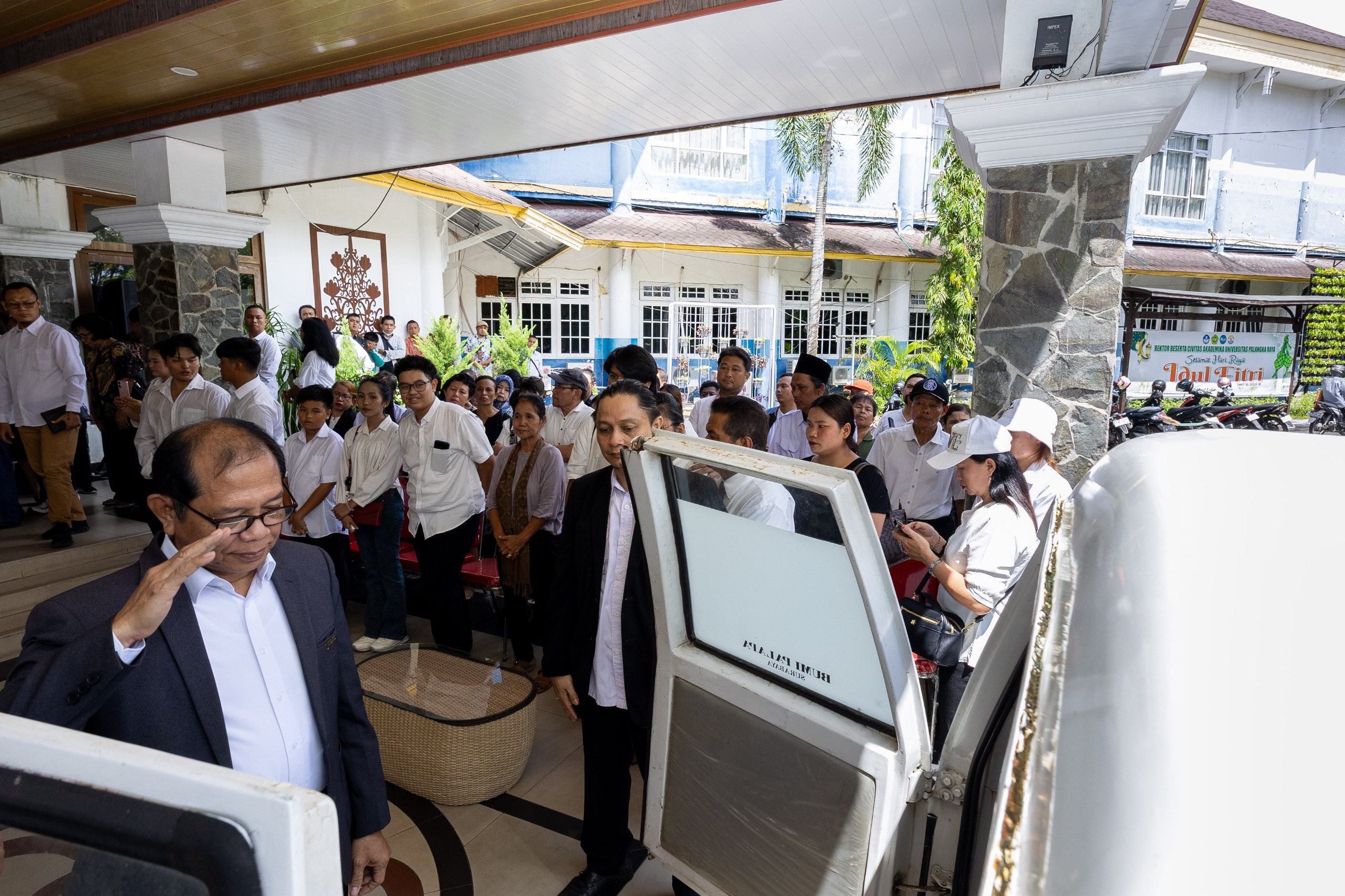 PALANGKA RAYA – Universitas Palangka Raya (UPR) menggelar prosesi pelepasan dan penghormatan terakhir bagi almarhum Drs. Napa J. Awat, S.U., yang pernah menjabat sebagai Rektor UPR periode 2001–2005. Kegiatan berlangsung khidmat di halaman Rektorat UPR dan dihadiri jajaran pimpinan universitas, sivitas akademika, tenaga kependidikan, purna tugas, tokoh masyarakat, serta keluarga besar almarhum.